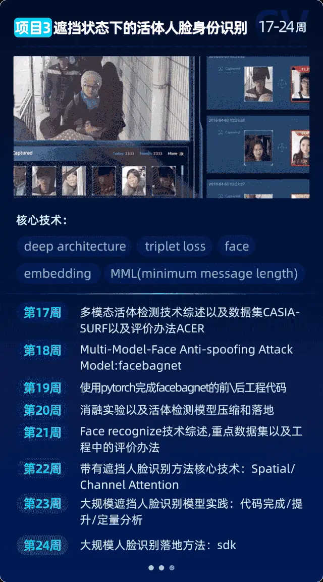 精选3大企业实训项目,都是最前沿的项目,其中不乏产业界没有解决的课题,有很大的优化空间。资深工程师团队专门研究项目,挖掘最优的解决方案。每个项目需要8周时间完成并且落地,培养学员解决问题的能力和创新能力。