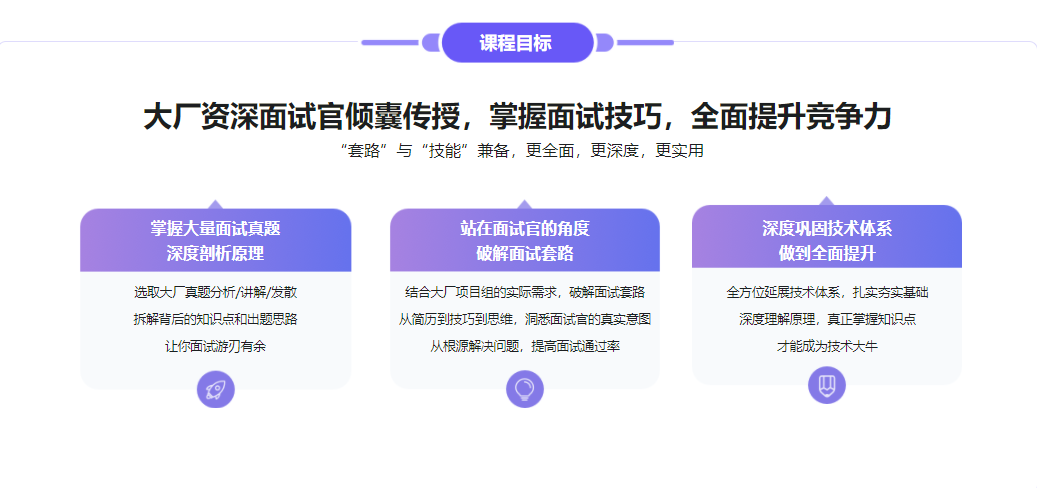 本章主要带大家了解本门课程内容,了解面试过程,知己知彼。通过本门课程的学习,能够满足阿里P5-P6(百度T4-T5)的面试需求。