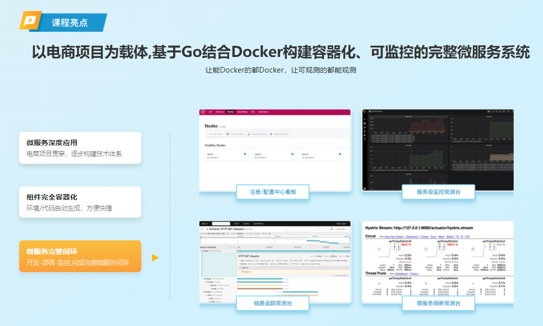 对于真正微服务项目来说,服务开发只是第一步,容器化、弹性伸缩和可观测才是真正关键。本课程将通过电商项目实战,系统学习完全形态的微服务,掌握成熟闭环的落地方案。