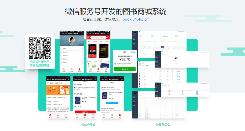 • 本章内容会给大家通览本门课程的整体架构、功能模块、技术选型及课程安排,让大家在一个清晰的开发思路下,进行后续的学习,同时领着大家登陆http://book.54php.cn(微信服务号可以打开这个网站直接扫码体验)一起来演示一下项目。本次课程是严格按照商业系统进行架构开发的,从PC管理员端到微信/H5会员端,从零开始,通俗易…