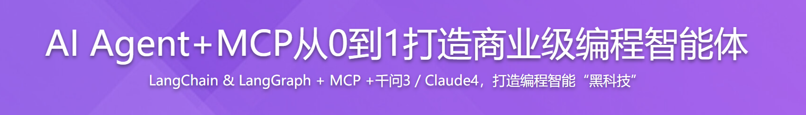LangChain+ LangGraph+MCP+大模型,打造编程智能体视频教程。本课程手把手带你开发专属AI编程智能体,涵盖MCP服务搭建、LangChain核心组件实操、Multi-Agent架构设计及私有化工具集成(浏览器控制、终端自动化、文档编写工具)。深入融合Cursor、通义灵码等AI编程利器的实际应用,助你打造强大AI Agent,掌握核心竞争力,抢占AI自动化开发技术制高点。
