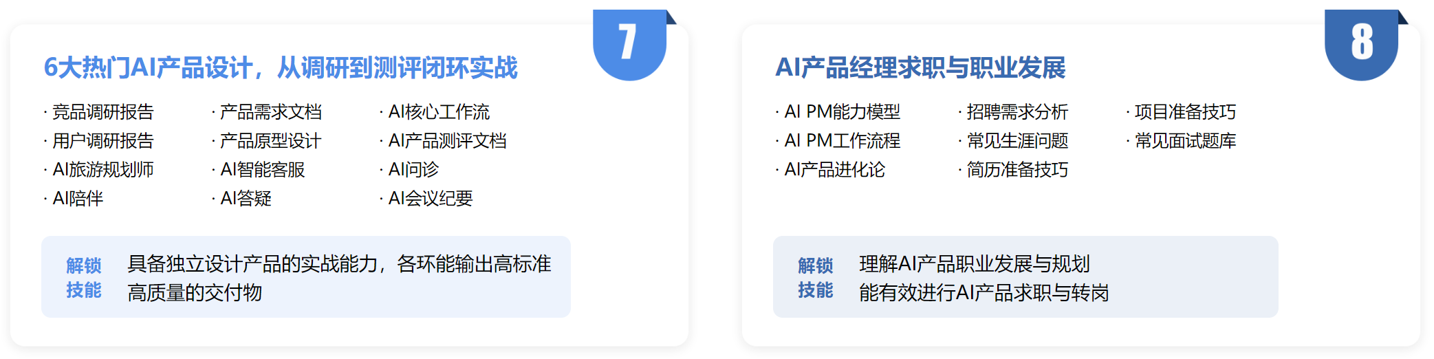 随着大模型驱动的产品创新加速,企业亟需既懂技术又懂业务的产品人才。本课程系统教授从产品定位、数据与模型选型到方案落地的全流程方法论,强调:需求洞察驱动模型应用、业务指标驱动产品设计、工程化落地保证可复用性。内容覆盖 B 端与 C 端 10+ 领域洞察,包含 6 个行业热点项目实战案例,并由在一线有丰富经验的大厂 P8 专家亲自授课与答疑,旨在培养可立即产出的高价值产品经理与技术负责人。