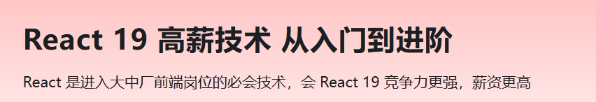 本课程从环境搭建起步,手把手带你从0到1,系统掌握 React 核心技术,打通项目开发全流程;更深度攻坚 React 19 高阶范式:性能调优、Hooks与状态管理、路由鉴权,以及 Tailwind CSS 样式工程化。最终,你将独立完成全栈应用对接,一站式掌握 React 19 生态精髓,突破学习瓶颈,倍增解决复杂业务的实战能力,抢占职业发展先机。