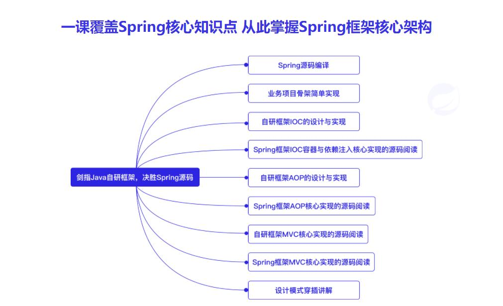 课程在自研框架和Spring框架的穿插讲解中让大家逐渐熟悉Spring框架的脉络。通过从0搭建一个较为完备的Web框架来提升框架设计能力,辅以通俗易懂的Spring核心模块源码的讲解,带你了解Spring框架的设计思路。