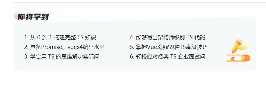 • TypeScript 已经成为前端未来必备技术,无论你是想入门 TS,还是精通 TS,本课程都可以满足你的需求。这门课程,将用保姆级的讲法带你从 0 基础系统构建 TS 知识体系,同时手把手带你编写 vuex4 及 Promise 真实源码项目,综合提升你的 TS 实战能力,最后再剖析 Vue3 源码当中 TS 的高级用法,让你真吃透 TS,成为 TS 高手。