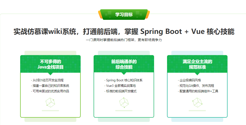 通过一个界面简约、功能完整的知识库项目,带你快速掌握Spring Boot核心知识+ Vue全家桶全栈技能。在此过程中,打造一套通用的组件工具(可应用于其他项目),掌握前后端分离开发模式,搭建一个专属自己的、内容可灵活配置的知识库系统。
