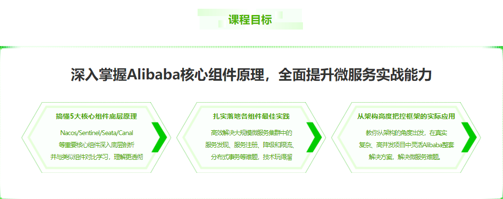 聚焦Spring Cloud Alibaba,深入剖析5大核心组件原理,并结合真实电商微服务架构,讲透框架在多场景下的最佳实践,助力全面提升微服务实战能力,轻松应对微服务领域的各种技术难题。