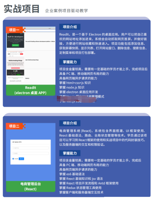 - 课程内容全维度更新为Vue3.0 融合企业技术,注重React人才培养!!!