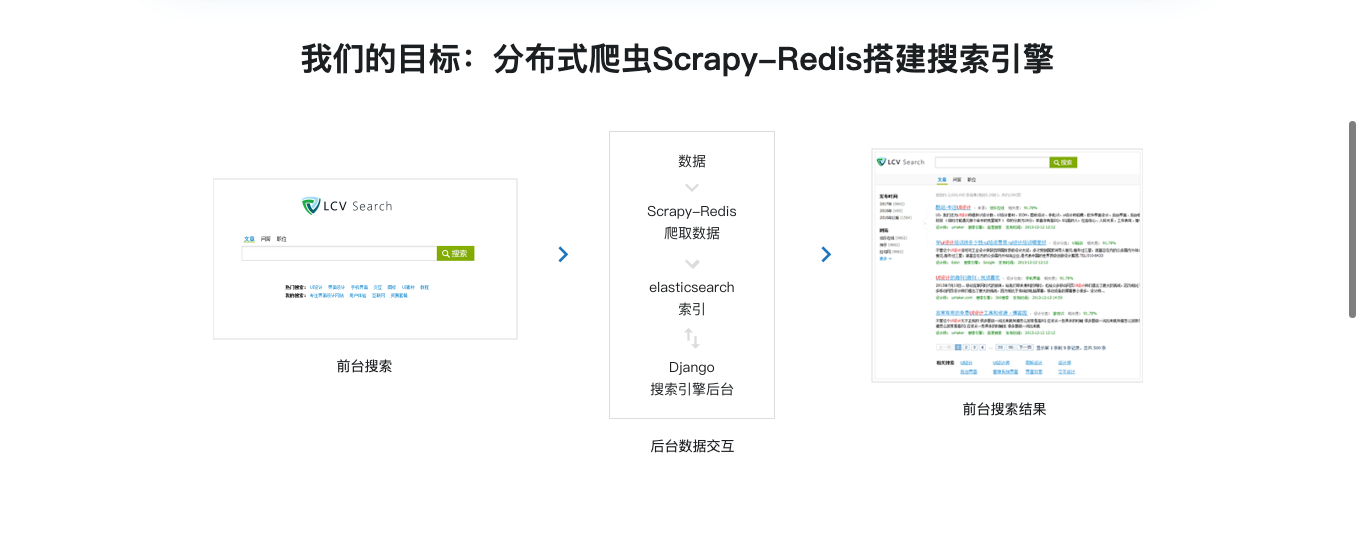 搭建scrapy的开发环境,本章介绍scrapy的常用命令以及工程目录结构分析,本章中也会详细的讲解xpath和css选择器的使用。然后通过scrapy提供的spider完成所有文章的爬取。然后详细讲解item以及item loader方式完成具体字段的提取后使用scrapy提供的pipeline分别将数据保存到json文件以及mysql数据库中。