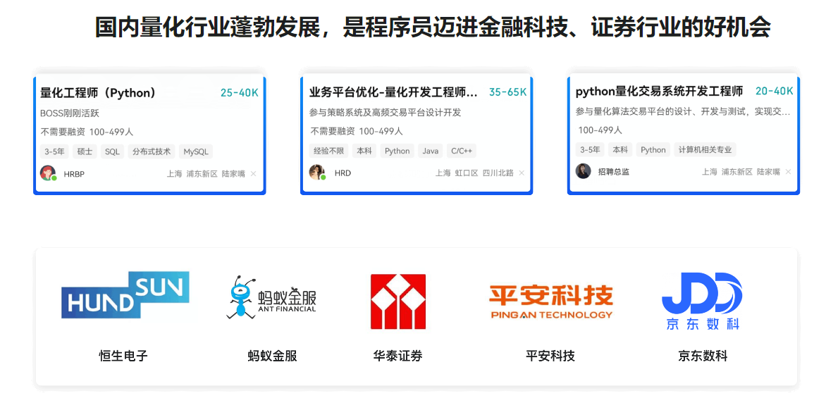 - 第14章 量化交易开发就业指南6 节 | 116分钟本章将分析量化交易开发岗位的就业前景,帮助同学们进行量化交易开发职业规划,分享量化交易面试经验,提供市面罕见的量化交易面试真题解析。帮助同学们更有针对性地准备量化交易开发相关面试。收起列表