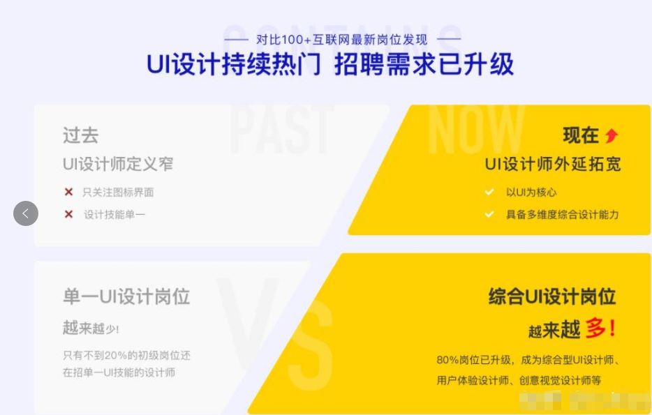 UI设计师视频课程出自于网易云课堂微专业板块,课程从招聘需求出发、着力于培养全链路设计能力,是一门实战型课程。本课程内容大致分为6大板块,逐一讲解UI设计核心模块知识,包括流行风格图标与插画设计、商业运营与品牌设计、移动端设计规范及交互设计等等。