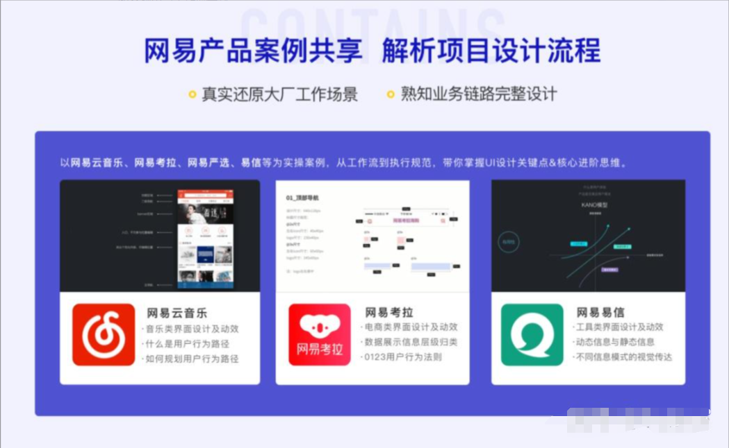 今天分享的一门UI设计师视频课程,来自于网易云课堂微专业模块,UI课程利用20周的课时手把手实操讲解,是一门全链路实战班,解析网易产品案例和项目设计流程,课程内容包括Ul设计师必备的产品思维、全链路设计师核心技能、网易严选网站设计案例等等。