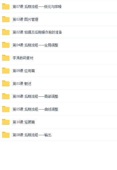 本套课程为摄影爱好者如何后期处理量身打造,自成一套体系。课程内容丰富,视角独特,立意较高。