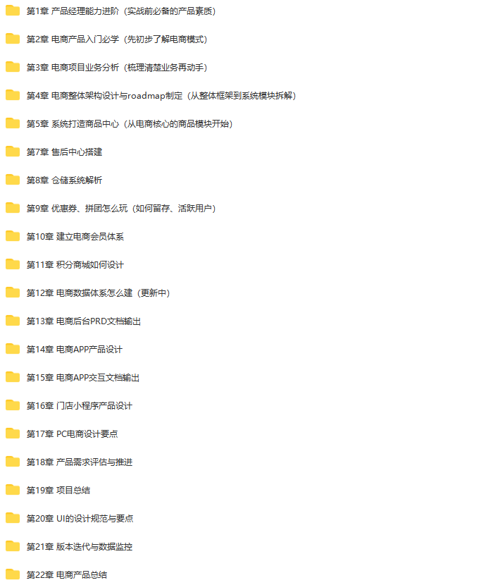 - ├──第2章 电商产品入门必学(先初步了解电商模式)