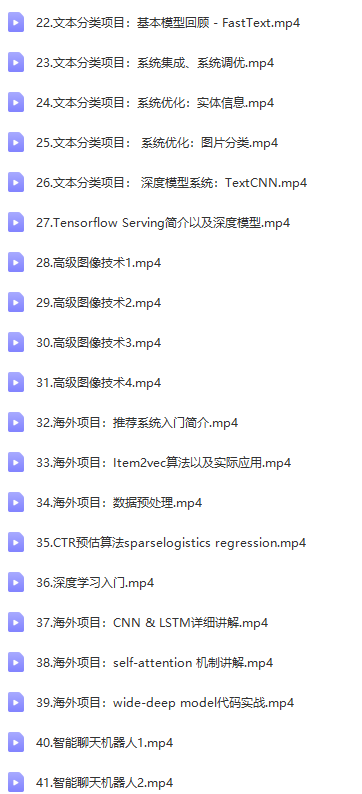 | ├──26.文本分类项目: 深度模型系统:TextCNN.mp4 115.07M