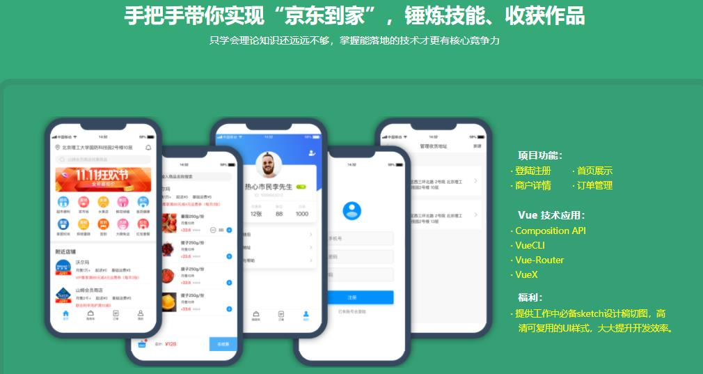 课程从 Vue3 基础语法,到组件原理、动画、代码设计,再到新语法扩展,全面系统地梳理 Vue 知识点。学习过程中,老师将倾囊相授多年的“避坑经验” ,带你以企业级代码质量和工程开发流程完成“京东到家”应用,实现对框架的彻底掌握。