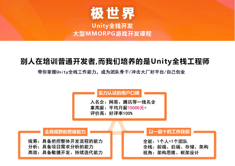 别人在培训普通开发者,而我们培养的是Unity全栈工程师,