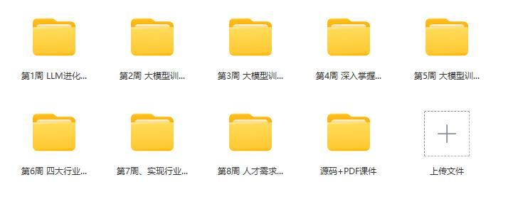 ├──第1周 LLM进化路线、领域微调及NLP应用落地方式+大模型基础及pytorch训练加载应用模型 | ├──1-1 PyTorch基础代码实操和自动求导介绍(1小时18分).mp4 408.48M | ├──1-10 图文: 大模型的核心--transformer 模型【学习辅导笔记】(1).pdf 502.52kb | ├──1-10 图文: 大模型的核心--transformer 模型【学习辅导笔记】(2).pdf 573.82kb | ├──1-11 图文: Transformer--编码和解码器【学习辅导笔记】.pdf 421.68kb | ├──1-12 图文: Transformer--模型嵌入【学习辅导笔记】.pdf 422.55kb | ├──1-13 图文: 【思考题】transformer 思考题(2).pdf 273.92kb | ├──1-13 图文: 【思考题】transformer 思考题(3).pdf 229.20kb | ├──1-13 图文: 【思考题】transformer 思考题(1).pdf 218.38kb | ├──1-14 图文: Transformer-前馈层【学习辅导笔记】(2).pdf 130.98kb | ├──1-14 图文: Transformer-前馈层【学习辅导笔记】(2).pdf 583.71kb | ├──1-15 图文: Transformer--残差归一化【学习辅导笔记】.pdf 423.30kb | ├──1-16 图文: 大模型训练过程【学习辅导笔记】.pdf 471.49kb | ├──1-17 图文: 大模型训练-SFT【学习辅导笔记】.pdf 449.87kb | ├──1-18 图文: 大模型训练-Reward【学习辅导笔记】(1).pdf 417.03kb | ├──1-18 图文: 大模型训练-Reward【学习辅导笔记】(2).pdf 181.42kb | ├──1-19 图文: 大模型训练-PPO【学习辅导笔记】.pdf 459.64kb | ├──1-2 模型训练流程和CUDA原理及并行基础(1小时42分).mp4 528.99M | ├──1-20 图文: 大模型生成原理【学习辅导笔记】.pdf 299.74kb | ├──1-3 LLM的进化路线、领域微调及NLP的应用落地方式(一)(1小时17分).mp4 403.17M | ├──1-4 LLM的进化路线、领域微调及NLP的应用落地方式(二)(1小时11分).mp4 370.43M | ├──1-5 图文: 概览【学习辅导笔记】.pdf 191.20kb | ├──1-6 图文: LLM 进化路线与现状【学习辅导笔记】(1).pdf 366.65kb | ├──1-6 图文: LLM 进化路线与现状【学习辅导笔记】(2).pdf 463.69kb | ├──1-6 图文: LLM 进化路线与现状【学习辅导笔记】(3).pdf 451.14kb | ├──1-6 图文: LLM 进化路线与现状【学习辅导笔记】(4).pdf 470.20kb | ├──1-6图文: LLM 进化路线与现状【学习辅导笔记】(5).pdf 477.02kb | ├──1-7 图文: 大模型本质-概率统计【学习辅导笔记】.pdf 419.25kb | ├──1-8 图文: 训练过程-无监督预训练【学习辅导笔记】.pdf 442.88kb | └──1-9 图文: 训练过程-有监督预训练【学习辅导笔记】.pdf 443.69kb ├──第2周 大模型训练与微调研发背后的数据艺术+深入大模型基础理论夯实 | ├──2-1 大模型训练与微调研发背后的数据艺术(2小时02分).mp4 626.98M | └──2-2 深入大模型基础理论夯实(1小时26分).mp4 459.51M ├──第3周 大模型训练入门与进阶+大模型训练和推理优化框架和技巧 | ├──3-1 大模型训练入门与进阶(1小时29分).mp4 478.04M | └──3-2 大模型训练和推理优化框架和技巧(2小时23分).mp4 746.87M ├──第4周 深入掌握大模型应用开发框架LangChain+LangChain进阶-外挂知识库实现行业文档智能问答 | ├──4-1 深入掌握大模型应用开发框架LangChain(1小时53分).mp4 604.78M | └──4-2 LangChain进阶实战:外挂知识库实现行业文档智能问答实战项目(2小时11分).mp4 674.60M ├──第5周 大模型训练全流程实战+【实战】在云服务器微调和实操模型量化、模型推理和服务 | ├──5-1 大模型训练全流程实战(3小时01分).mp4 938.82M | ├──5-2 教你如何创建一个训练容器.mp4 5.62M | ├──5-3 在llm__course容器中实现环境安装和SFT演示(26分).mp4 141.15M | └──5-4 在云服务器实操模型量化模型推理和服务(28分).mp4 149.37M ├──第6周 四大行业微调模型落地案例和技术方案 | └──6-1 四大行业微调模型落地案例和技术方案(2小时01分).mp4 627.55M ├──第7周、实现行业文档智能问答技术方案+知识图谱构建 下游应用技术方案 | ├──7-1 实现行业文档智能问答技术方案(1小时42分).mp4 527.48M | └──7-2 知识图谱构建 下游应用技术方案(1小时48分).mp4 557.74M ├──第8周 人才需求与招聘专场 | └──8-1 市场需求与招聘专场【根据具体情况开展】(2小时02分).mp4 630.61M └──源码+PDF课件 | ├──PDF课件 | | ├──第1章 LLM的进化路线领域微调及其NLP应用范式.pdf 48.00M | | ├──第2章 大模型训练与微调研发背后的数据艺术.pdf 12.21M | | ├──第3章 结合代码理解Transformer模型.pdf 2.37M | | ├──第4章 LLM的训练方法讲解.pdf 1.32M | | ├──第5章 大模型框架选型.pdf 4.19M | | ├──第5章 模型训练训练优化.pdf 2.51M | | ├──第6章 大模型SFT实践.pdf 536.14kb | | ├──第6章 模型部署.pdf 3.48M | | ├──第7章 四大行业微调模型落地案例和技术方案.pdf 24.95M | | ├──第8章 大模型外挂知识库实现行业文档智能问答.pdf 8.75M | | └──第9章 知识图谱构建下游应用技术方案.pdf 13.48M | └──源码 | | └──llm-master.zip 1.93M