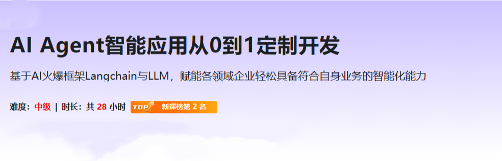 AI Agent已成为企业在构建智能化的定制化需求、解决特定问题、提升竞争力、创造新商业机会的关键。无论你是否是LLM领域的开发者,都非常值得领先学习。本课程将带你从零开始掌握一套能满足不同业务场景的智能化解决方案,并手把手带你打通从需求分析、项目设计、开发、部署、优化等核心环节,让你借助Langchain与LLM的强大能力,轻松集成专业知识库与外部API工具,高效打造精准解决企业定制化、智能化AI Agent。另外,课程中为你分享了主流行业案例和实践经验,帮你分析AI原生应用时代程序员的职业发展路径,助力提升你的综合能力和竞争力,先人一步成为AI 时代下的枪手人才。