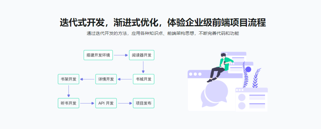 运用Vue开发一个可商用、功能完备的Web阅读应用。在开发中,将各种知识点穿插应用,让你真实感受到一个明星产品开发的全过程。同时,项目提供一流的用户体验和交互水准,在实现功能之外带你探究各种优秀前端交互的设计和实现。