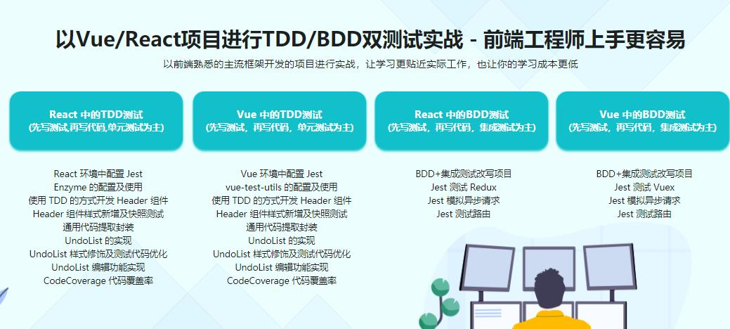 以 Vue / react 项目进行实战,更适合前端工程师学习的测试课程